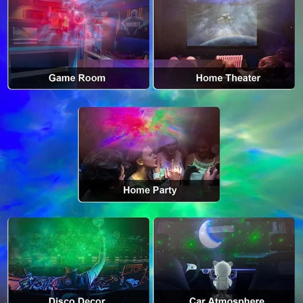 Ideal para ambientes infantiles, cine en casa y decoración de eventos. Proporciona una iluminación envolvente y un sonido poderoso que transforma cualquier espacio en una galaxia íntima y relajante.